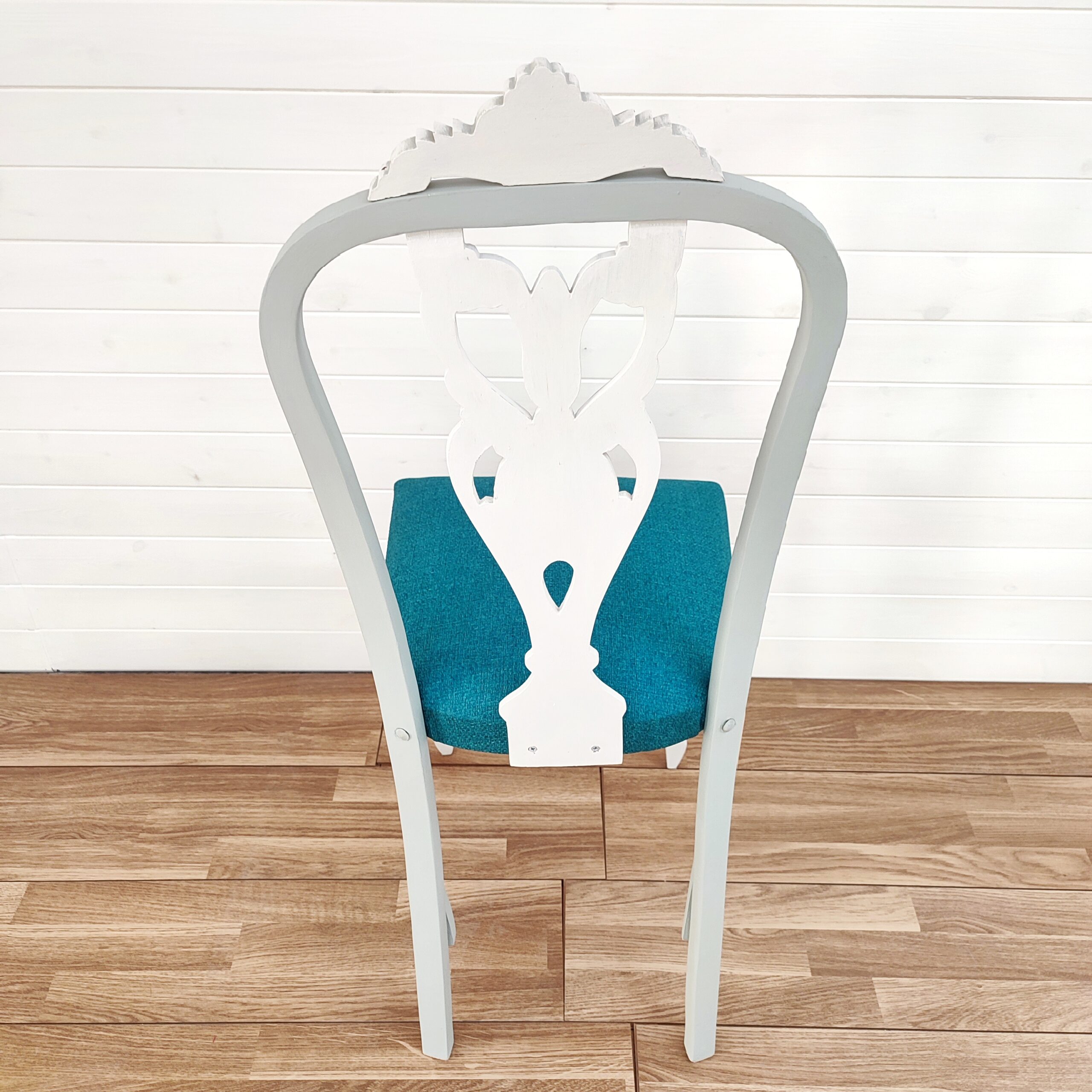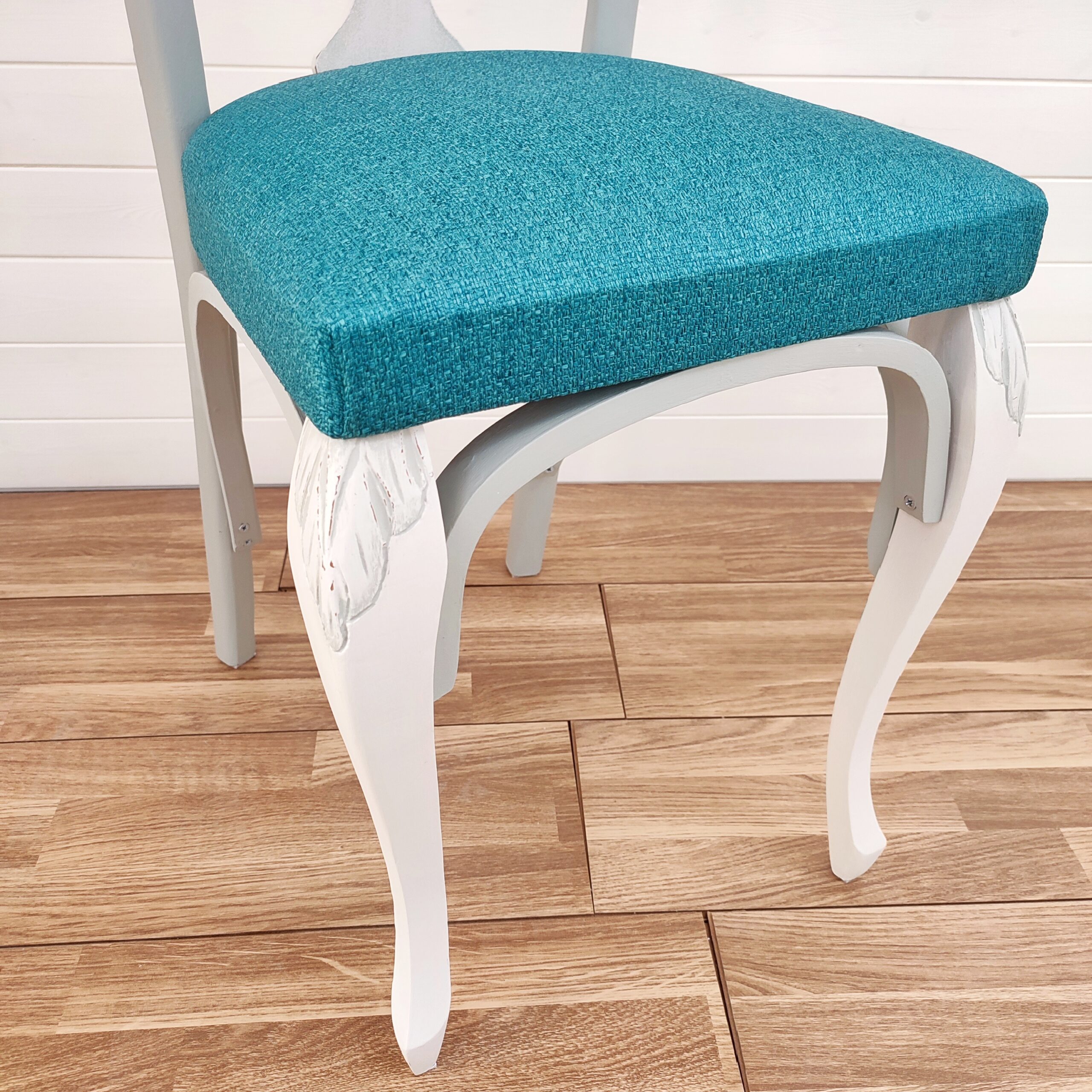 La struttura del tavolo, con la sua finitura Torroncino e Ortensia Verde, evoca un senso di eleganza e semplicità. La patina del tempo conferisce al tavolo un aspetto invecchiato che aggiunge un tocco di carattere e autenticità. Le sedie fatte a mano sono completamente restaurate, rivestite e rifinite con gli stessi toni del tavolo. Il legno intagliato e i dettagli aggiungono un tocco di raffinatezza, mentre il nuovo rivestimento garantisce il massimo comfort: il perfetto equilibrio tra classico e moderno.
